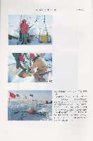 レーダーの信号強度から波浪による海面高を求めて、その分布をプロットした。色変化と海面高の関係を下に示す。表紙図では、左下の角がアンテナの位置になる。信号の到達範囲は半径約4km、図の上方が北に対応する。観測は、平成7年1月5日、石川県松任市徳光海岸において行った。 (資料提供:金沢工業大学環境情報総合研究所 後藤真太郎) |